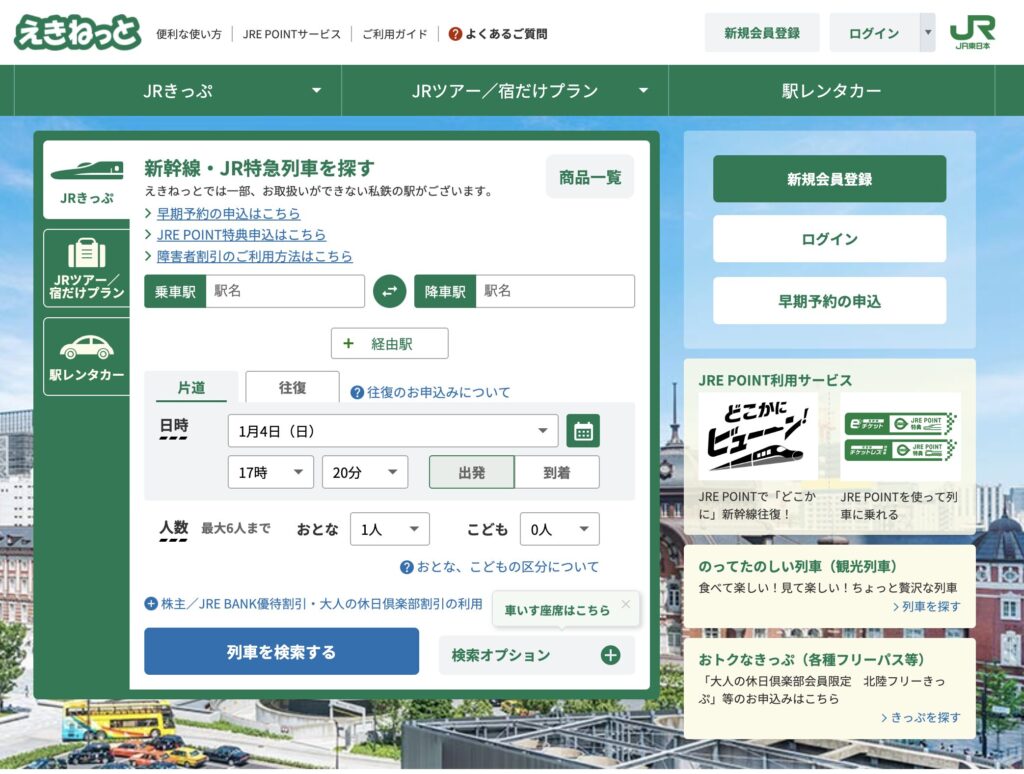 キュンパスはえきねっと購入限定なので、えきねっとへの登録が必ず必要です。