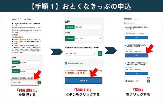【手順1】「おとくなきっぷの申込」をクリック