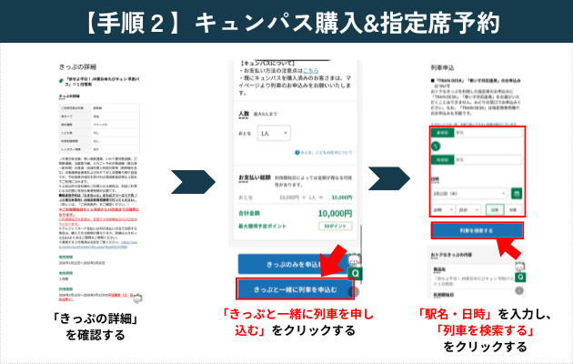 【手順2】キュンパス購入&指定席予約