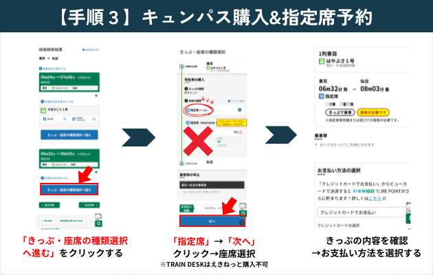 【手順3】キュンパス購入&指定席予約