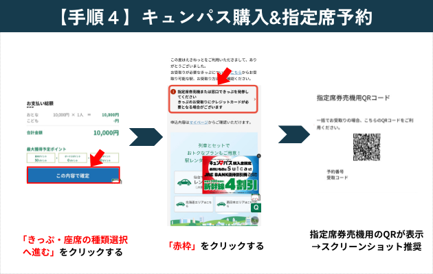 【手順4】キュンパス購入&指定席予約