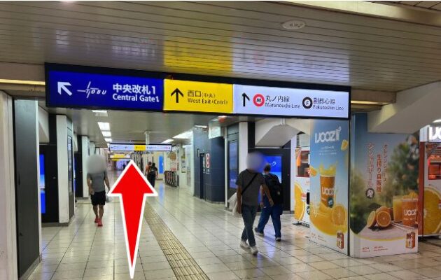 右に東京メトロ丸の内線の改札が見えてきます。