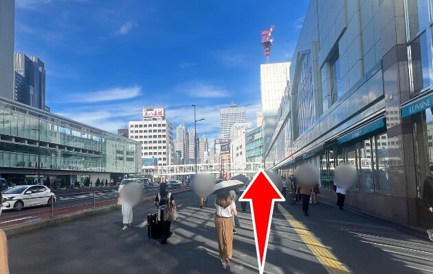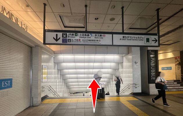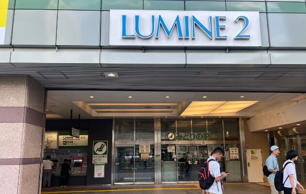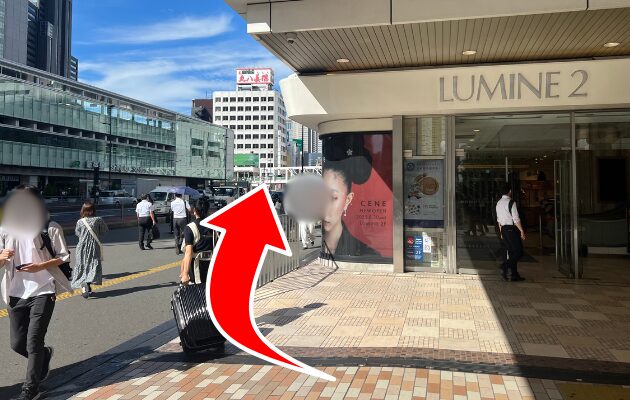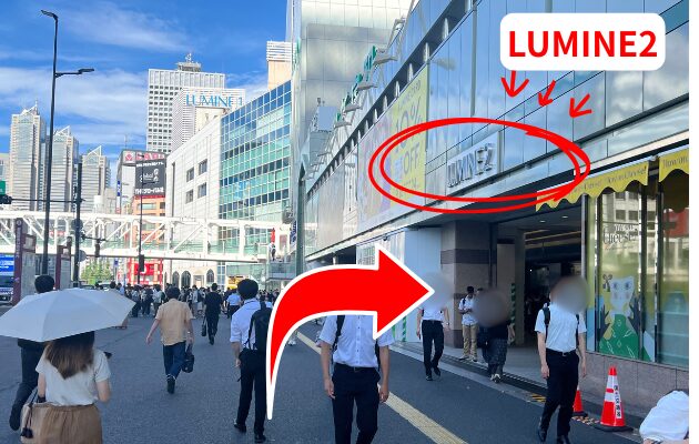 「東南改札」を出て右に進むと、右手にLUMINE2が見えるので、さらにに曲がってください。