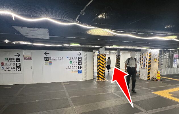 新宿駅「南改札」を出て左に曲がったら、まっすぐ進みます。