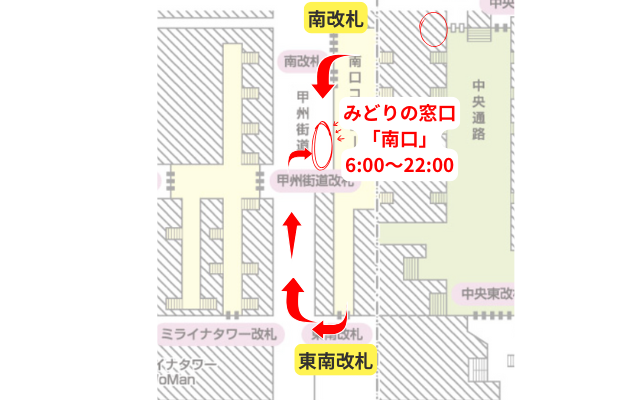 新宿駅のみどりの窓口「南口」は具体的にどこにありますか?