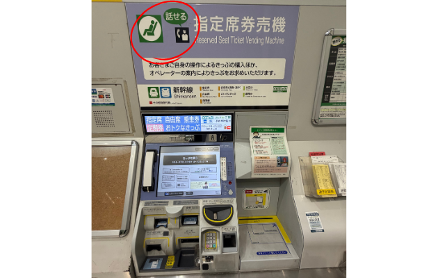 「話せる指定席券売機」は、受話器を通じてオペレーターと直接話しながら新幹線のチケットを購入できる券売機です。みどりの窓口と同様のサービスを受けられます。(寝台券の購入などは不可)